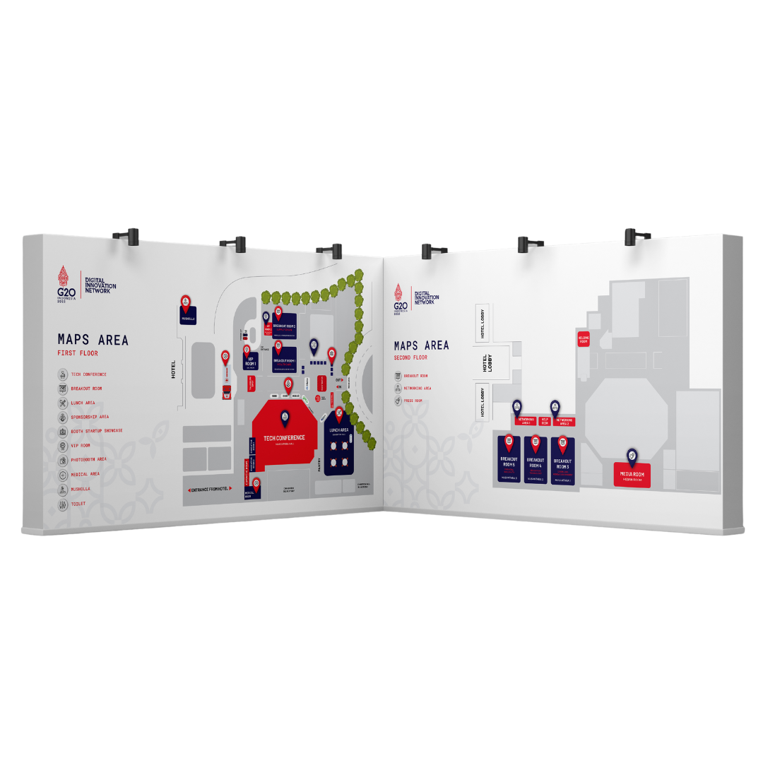 Our designs were crafted with the utmost attention to detail, ensuring they resonated with the G20's theme, "Recover Together, Recover Stronger." From the welcoming backdrop that greeted delegates to the informative maps and visually appealing flyers, every element was designed to be both functional and reflective of Indonesia's unique cultural identity. We aimed to create a cohesive visual experience that would leave a lasting impression on all who attended.